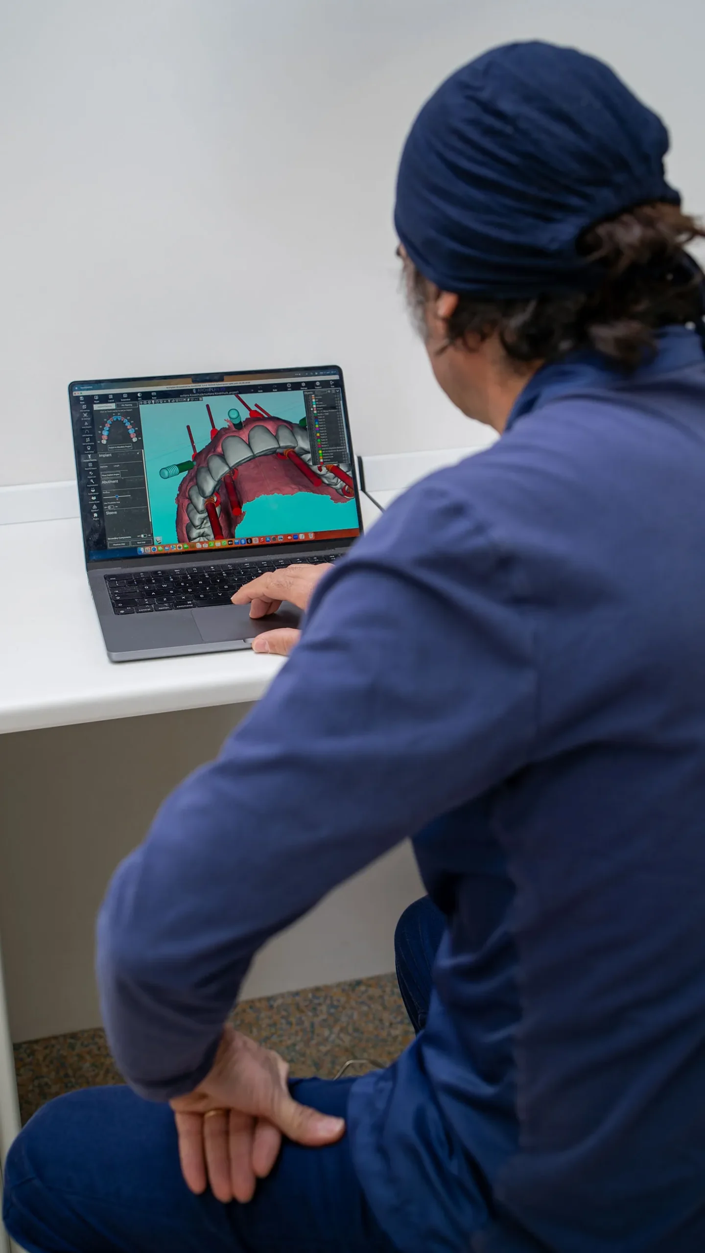 Utilizziamo software avanzati che riescono a sovrapporre, integrandole, le immagini delle radiografie 3D con quelle delle impronte digitali, insieme ai dati clinici. Questo permette di pianificare ogni intervento chirurgico in modo virtuale, come nel caso delle avulsioni dei denti del giudizio inclusi o le chirurgie implantari. Così aumenta la sicurezza, la precisione e la prevedibilità del risultato finale, con tempi d’intervento ridotti e guarigioni più rapide.