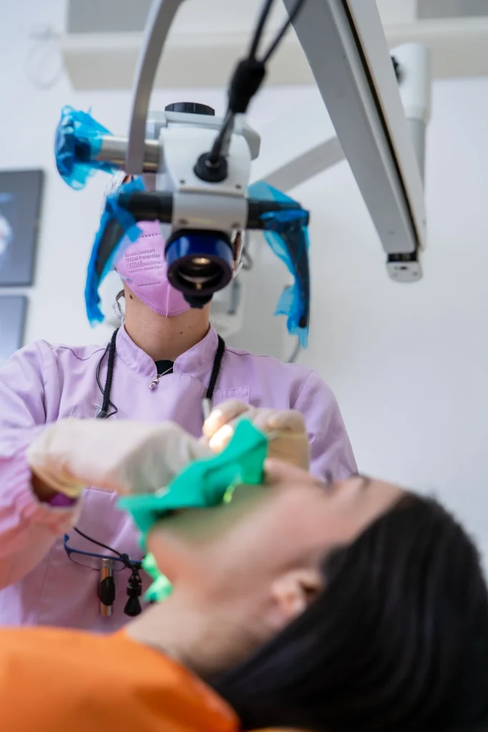 Il microscopio è parte integrante della nostra pratica clinica quotidiana. Grazie agli elevati ingrandimenti, consente di vedere dettagli invisibili a occhio nudo: microfratture, carie nei primissimi stadi di sviluppo, canali delle radici accessori o complessi da trattare, depositi microscopici di tartaro sottogengivale. Questo si traduce in diagnosi più accurate, terapie più efficaci e conservative, risultati più duraturi.