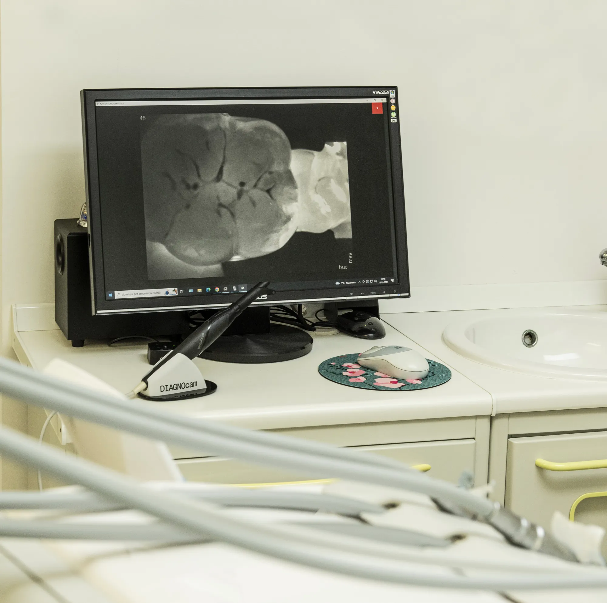 Il Diagnocam è una telecamera a infrarossi che consente di individuare le carie anche negli stadi iniziali attraverso la transilluminazione del dente.